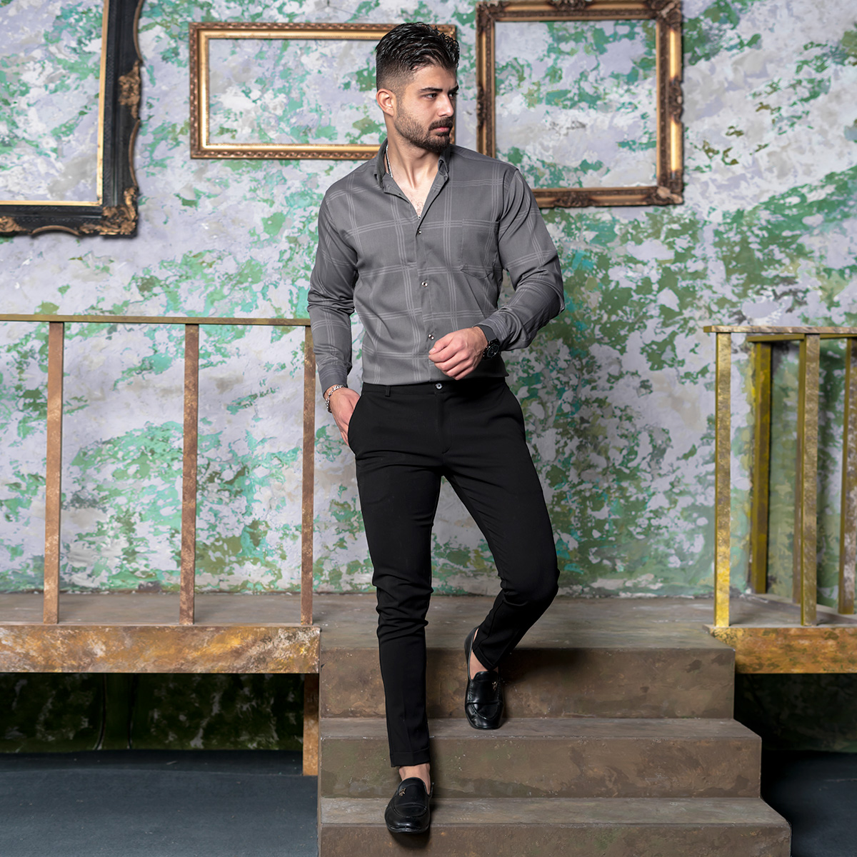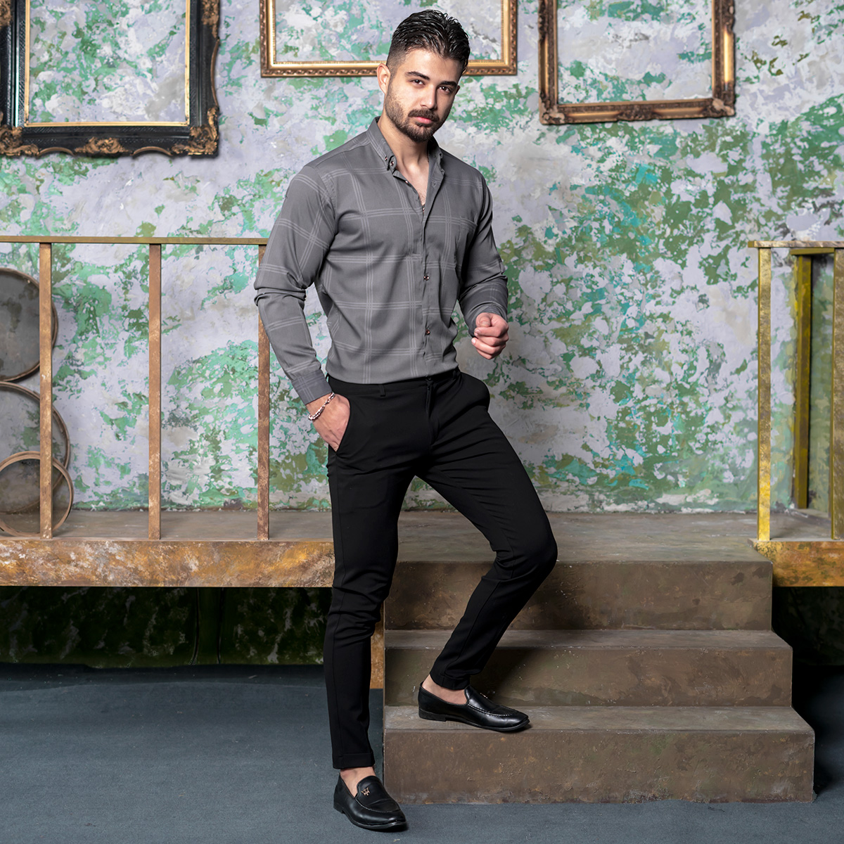 پیراهن مردانه چهارخونه طوسی مدل Ravin