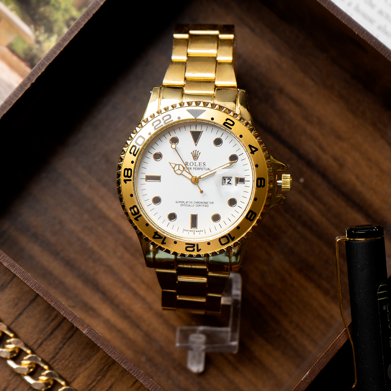 ساعت رولکس طلایی صفحه سفیدمردانه مدل 435