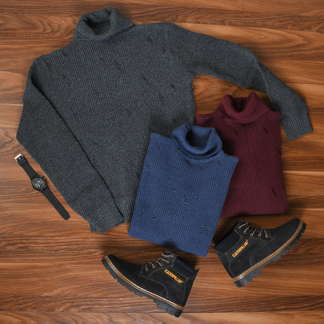 پلیور یقه اسکی طوسی زاپ دار مردانه مدل U10