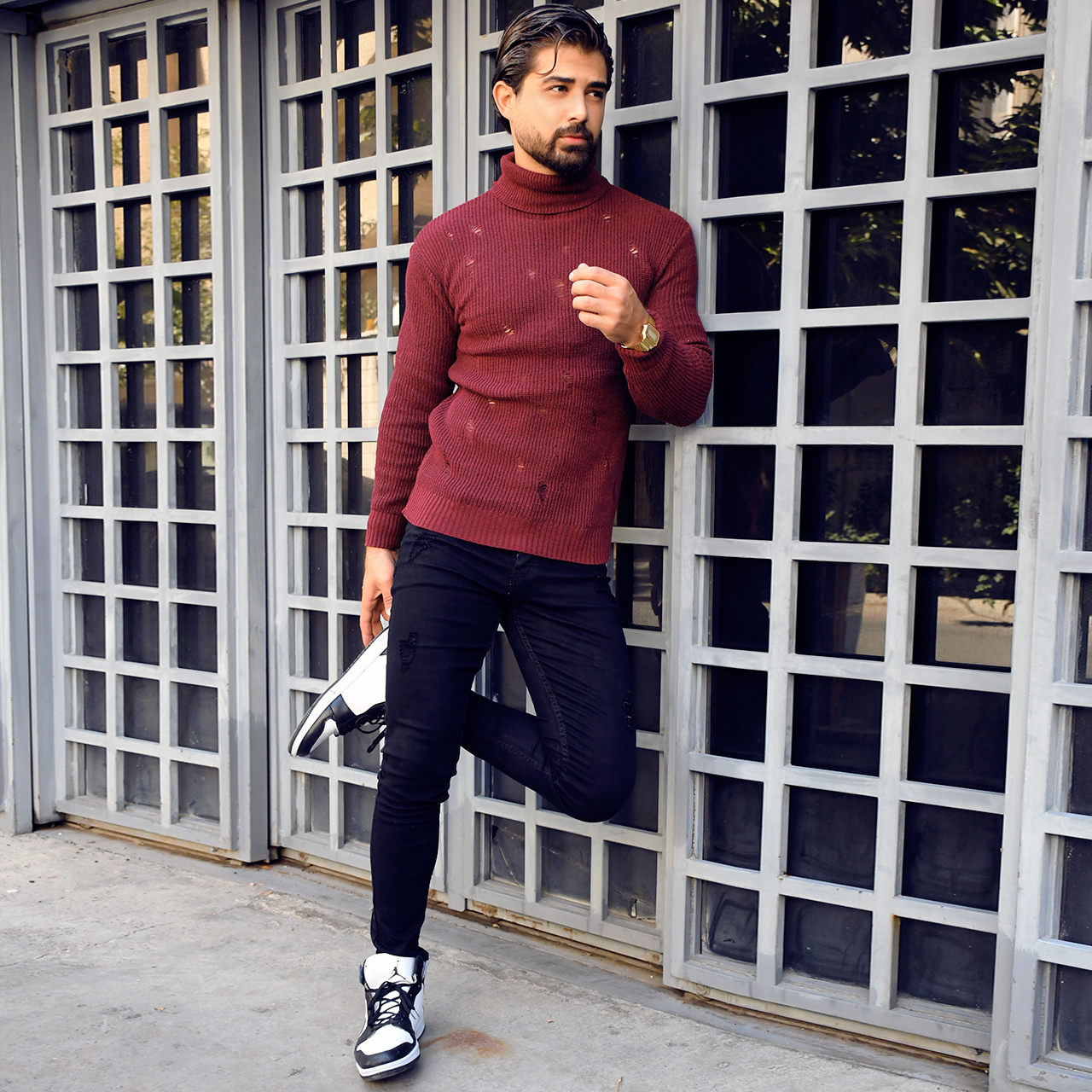پلیور یقه اسکی زرشکی زاپ دار مردانه مدل U10