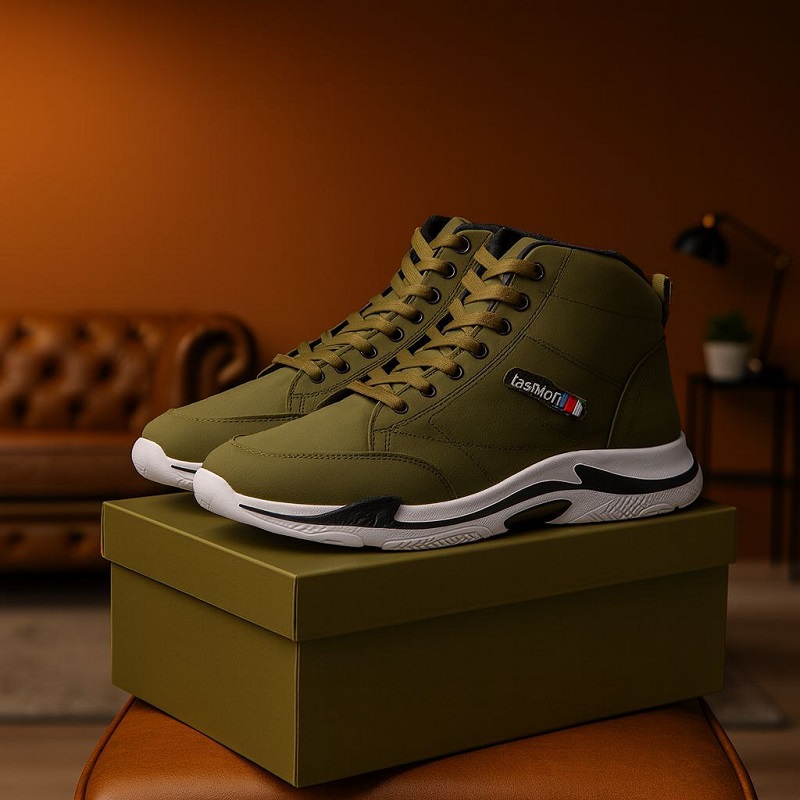 کفش ساقدار مردانه زیتونی مدل EMTO
